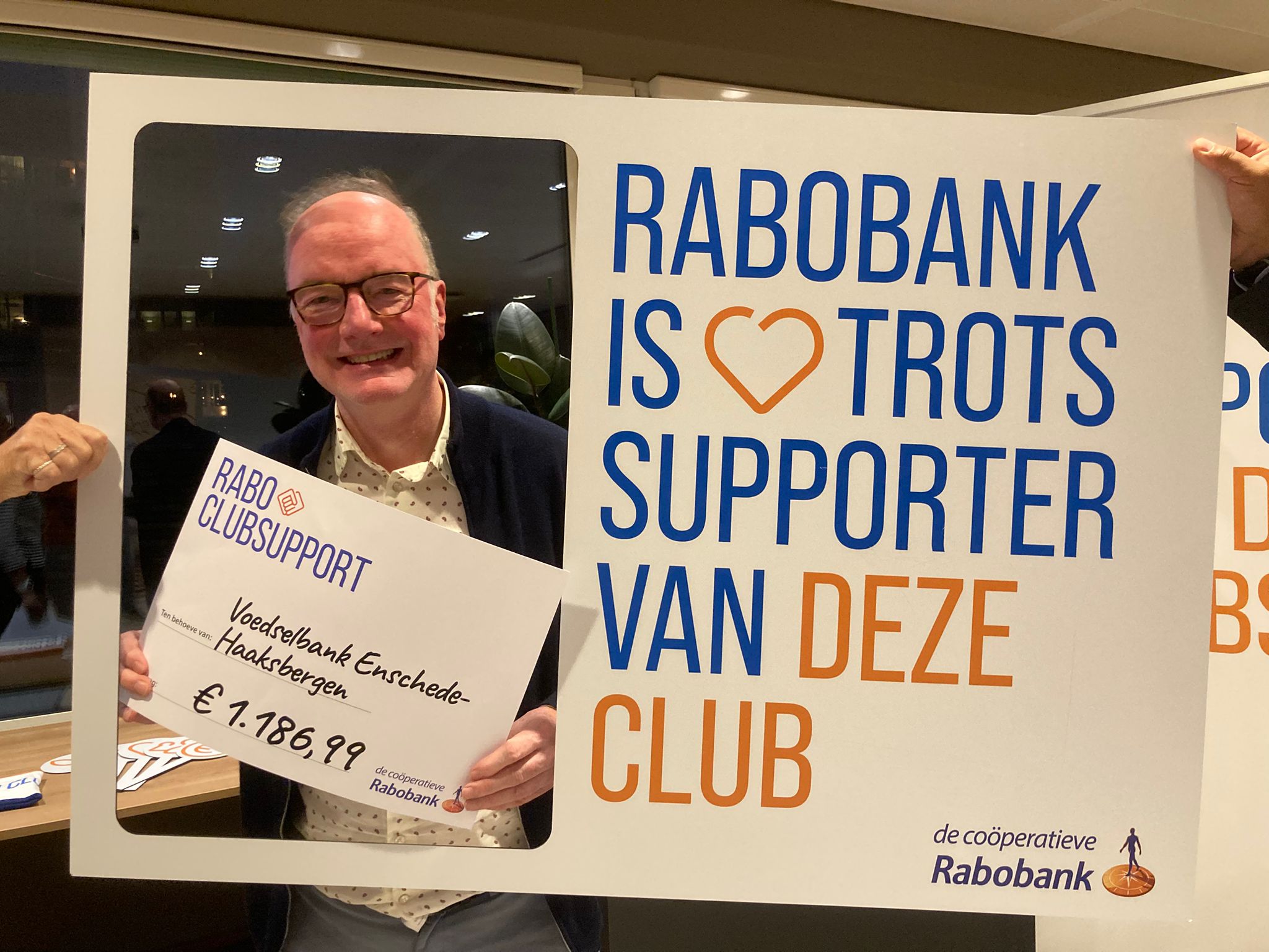 Voorzitter Ale Holsbrink neemt de cheque van de Rabo Clubsupport actie in ontvangst
